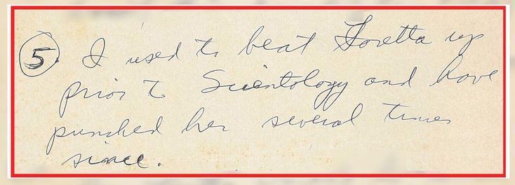 - On September 26, 1972, Ronald wrote, “I used to beat Loretta up prior to Scientology and have punched her several times since… I used to hit the kids a lot before Scientology. Now if I see it’s the only thing that I can do, I’ll give them a punch. (Very infrequently)” Click here to see the handwritten document.