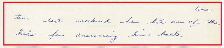 - From his wife Loretta, “One time last weekend he hit one of the kids for answering him back.” Click here to see the handwritten document.