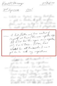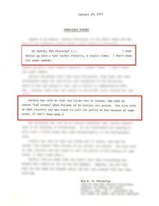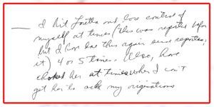 - From his wife Loretta, “One time last weekend he hit one of the kids for answering him back.” Click here to see the handwritten document.
