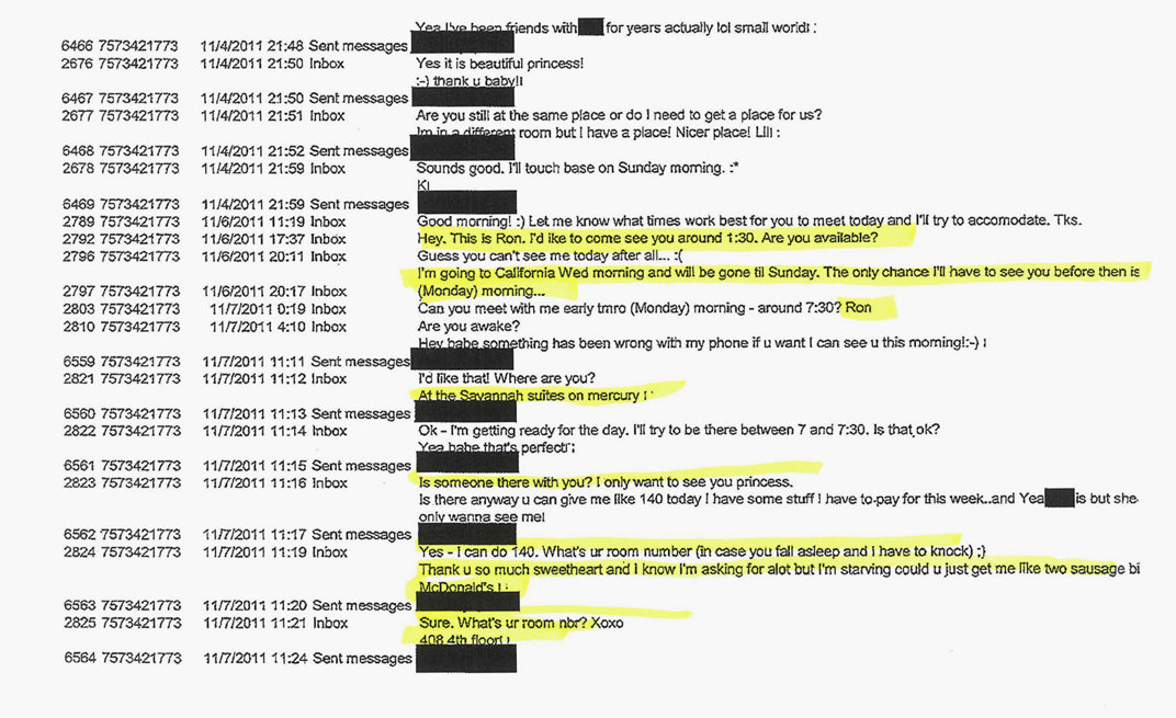Ronnie left a long trail of text messages that became public as a result of his arrest, which gave the Enquirer plenty of fodder to expose the details of Ronnie’s sordid life. With texts like: