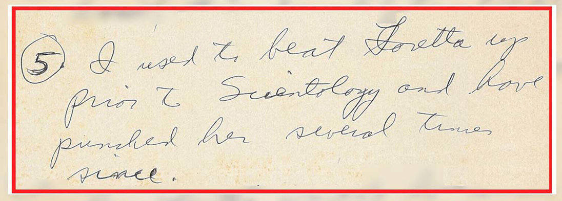 “I used to beat Loretta up prior to Scientology and have punched her several times since… I used to hit the kids a lot before Scientology. Now if I see it’s the only thing that I can do, I’ll give them a punch. (Very infrequently)”