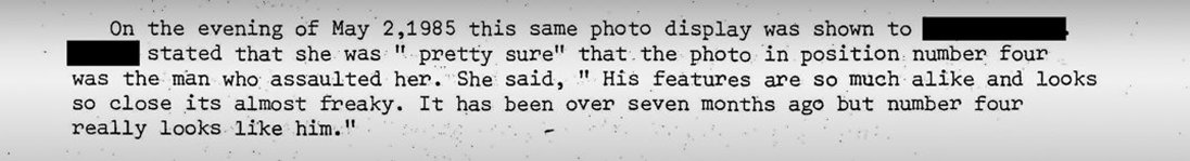 When both women were shown a photo display of five different men, they both picked out Ron Miscavige from the selection and stated he was the man who entered their rental offices, with the victim (the woman who was actually attacked) identifying Ron as the man who assaulted her.