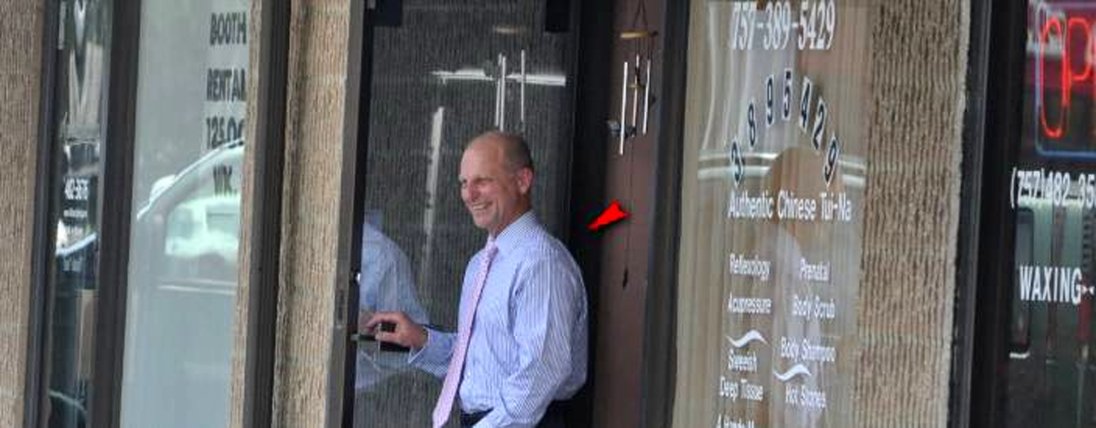 Ronnie: Exiting a Massage Parlor, one of many that dot the Virginia landscape. A “happy” experience from a massage?