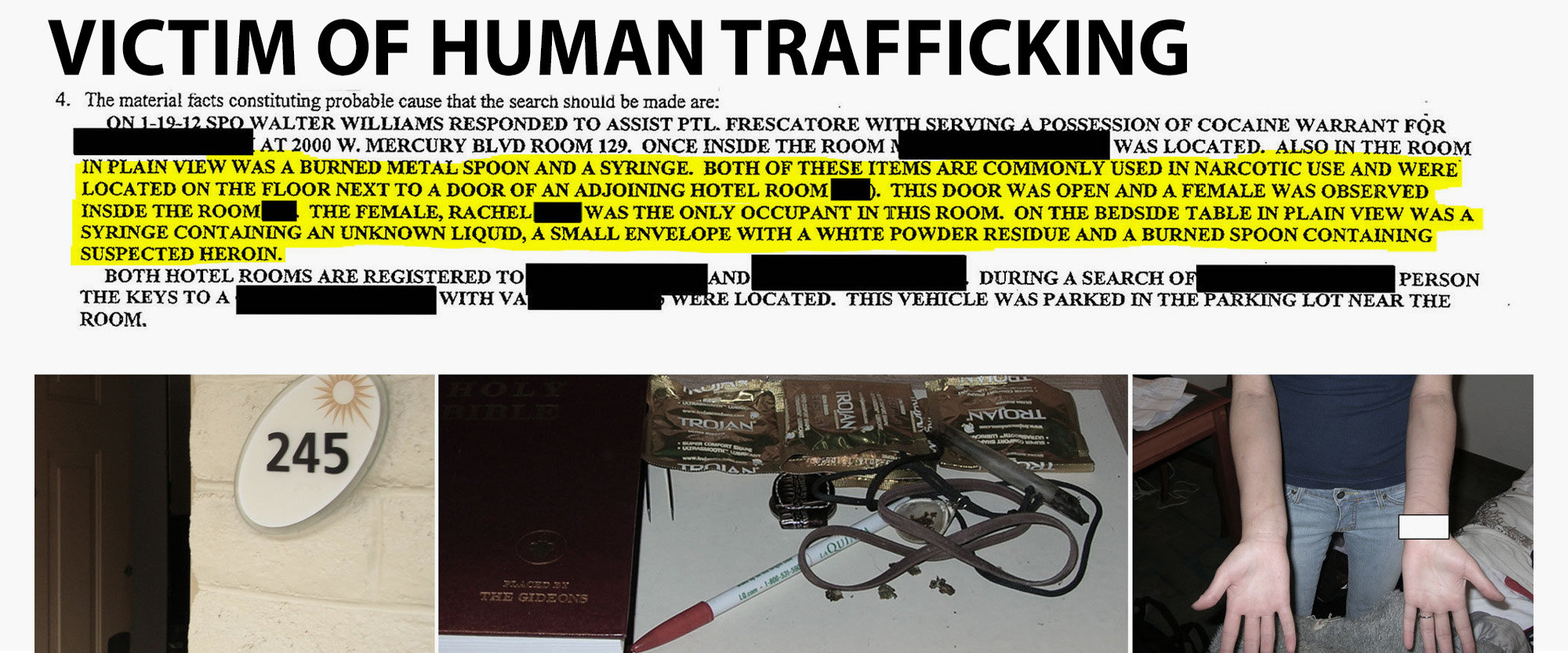 No sooner had Ronald Sr. arrived to live at Ronnie’s house than Ronnie was arrested by police in Hampton, VA., as part of a larger FBI sting into drugs and prostitution. This, of course, was the same category of abusive and immoral behavior—sex crimes—to which Ronnie’s sisters had been subjected to years earlier, thereby affirming their reasons for objecting to their father going to live with Ronnie. As stated in the police records, the Court disposition for Ronnie’s soliciting prostitution from a known human sex trafficking victim reads “GUILTY W/H/F UNTIL NOV 2013.” The report elaborates that there were at least 30 such incidents in just a two month period with single prostitutes and even one instance of a threesome involving “everything.” The police documents show he used a cell phone with the same phone number he uses as a Manager of Long & Foster. Ronnie admitted to the police that he “was afraid . . . to answer the[ir] question truthfully” because he “was afraid that he would get in trouble if he did so.”