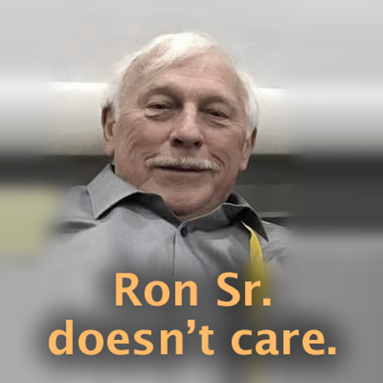 Ron is undaunted by his namesake’s arrest for solicitation of prostitution. Ron is the expert at the art of the cover up. Ron knew his namesake son was arrested for solicitation of prostitution as part of an FBI drug and prostitution sting. Ron covers it up under the tag line, “life was good.